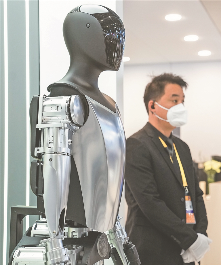 特斯拉人形机器人在第五届进博会汽车展区亮相。新华社记者 丁汀摄