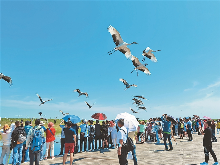 除了打冰球、吃烤肉,每支参赛球队都会不约而同地去扎龙自然保护区赏鹤,同时奥悦水世界、龙沙动植物园、鹤城公园等旅游景点的游客接待量也激增。小冰球,让鹤城旅游变得火热。