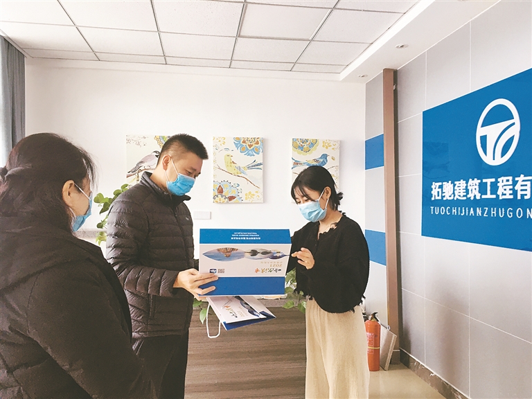 ④区政务服务中心工作人员上门送“企业开办大礼包”。