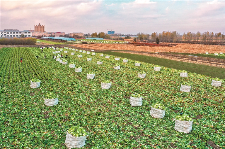 去年以来,兰西确立了“千栋温室、万栋冷棚、40万亩裸地、百家加工企业、百亿蔬菜产值”的发展目标,大力发展蔬菜产业,力求打造高品质的“中央厨房”。在蔬菜种植上,兰西坚持冷棚、温室和裸地一起抓,探索了“龙头企业+村组织+合作社+农户”蔬菜托管种植模式,发挥龙头企业带动作用,定品种定价格定标准,保证质量和收入,打造土地托管升级版。在蔬菜精深加工上,兰西发挥榆林镇紧邻哈尔滨的交通区位优势,在榆林镇打造食品工业园区,大力发展蔬菜精深加工产业。目前,引进京能集团建设投资8亿元分三期建设榆林食品工业园区,一期总占地面积34万平方米,已入驻企业8家。在蔬菜销售上,兰西坚持“北菜南运”、哈达市场、速冻蔬菜、预制菜同步销售,加大品牌创建力度,做大“寒地黑土·兰西菜”区域公共品牌,叫响兰西香瓜、兰西玉米等地理标志品牌,提高市场竞争力。