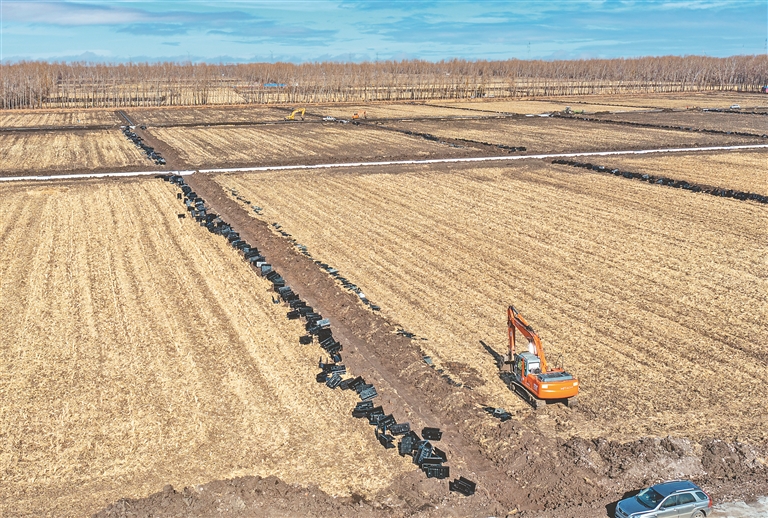 北大荒农业股份友谊分公司抢工期建设千亩高标准农田。 徐宏宇 曹发军摄