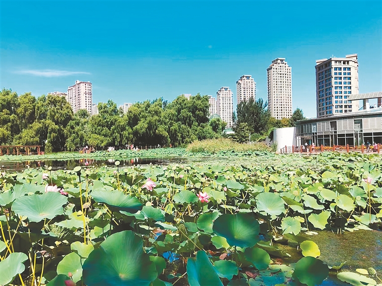 公园依傍着居民住宅楼而建,四周高楼林立,一片珍珠般的荷花池坐落其间,既充分利用了空间,也美化了小区环境。对当地居民来说,这个公园如同后花园一样,增添了生活中的美丽;而对游人来说,这里又仿佛是一处世外桃源,让人赏心悦目,修养身心。