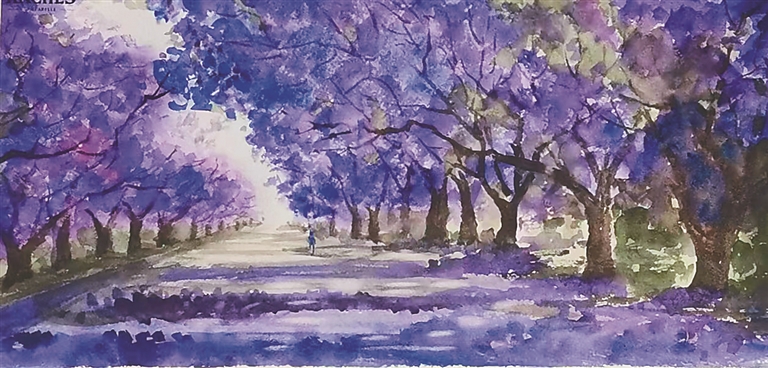 《蓝花楹》 水彩画 17×36cm 姜米粒