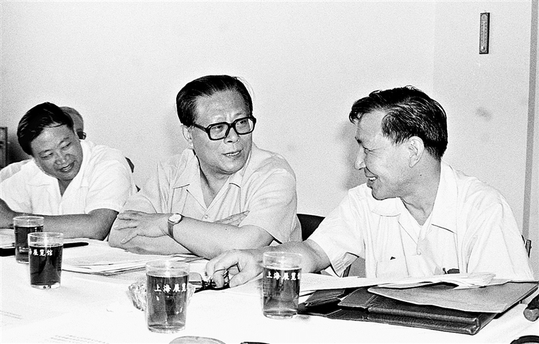 1985年,江泽民同志在上海市八届人大四次会议上。 新华社发