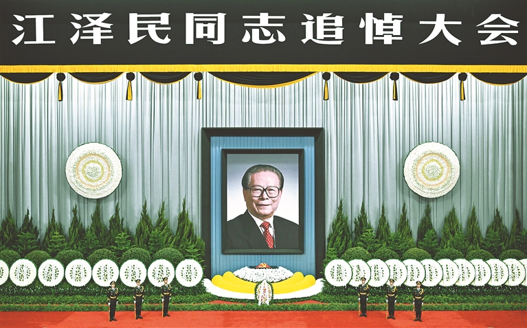 十二月六日上午,中共中央、全国人大常委会、国务院、全国政协、中央军委在北京人民大会堂隆重举行江泽民同志追悼大会。新华社记者 翟健岚摄