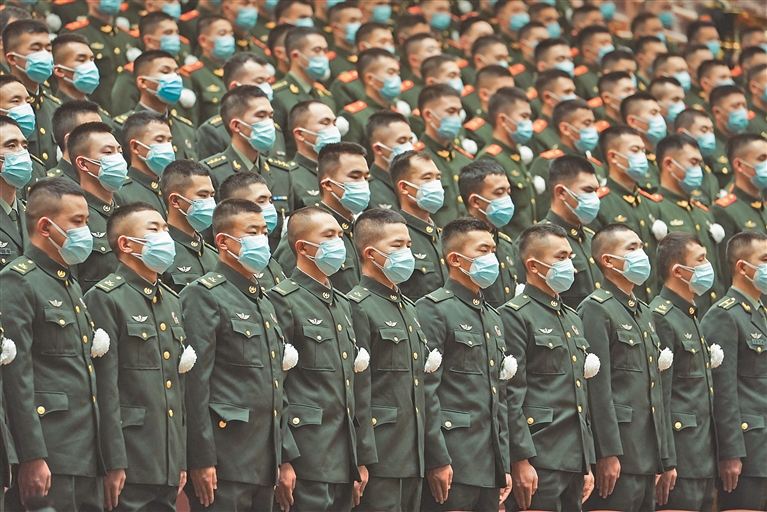 十二月六日上午,中共中央、全国人大常委会、国务院、全国政协、中央军委在北京人民大会堂隆重举行江泽民同志追悼大会。这是出席追悼大会的解放军代表步入人民大会堂大礼堂。新华社记者 翟健岚摄