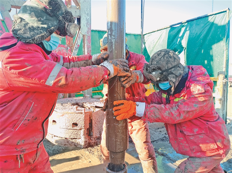 12月8日5时,大庆钻探钻井一公司30681钻井队实现钻井进尺十万米“四连冠”,成为大庆油田今年首支年进尺突破十万米的队伍,创出油田外围开发井钻井施工高水平。这是30681钻井队施工现场 。