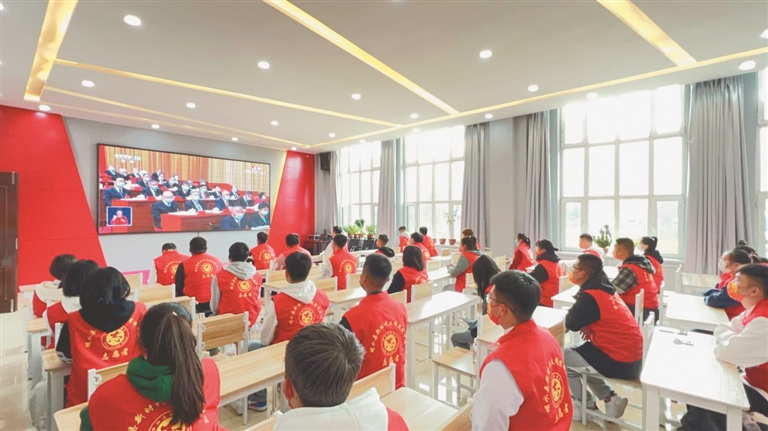 明水县新时代文明实践中心组织志愿者收听收看党的二十大开幕式。