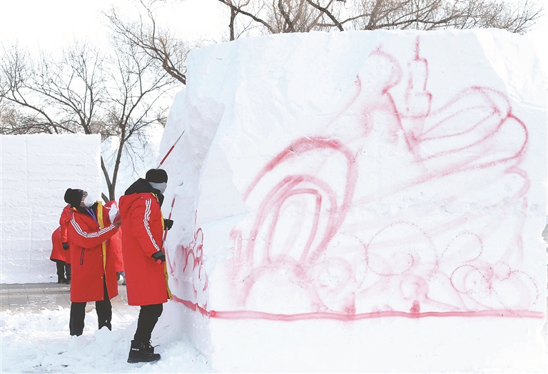 18日上午,第八届黑龙江省大学生雪雕比赛在哈尔滨太阳岛雪博会园区开铲,这是第35届哈尔滨太阳岛雪雕艺术博览会的首项赛事,为今冬太阳岛各大雪雕比赛拉开序幕。