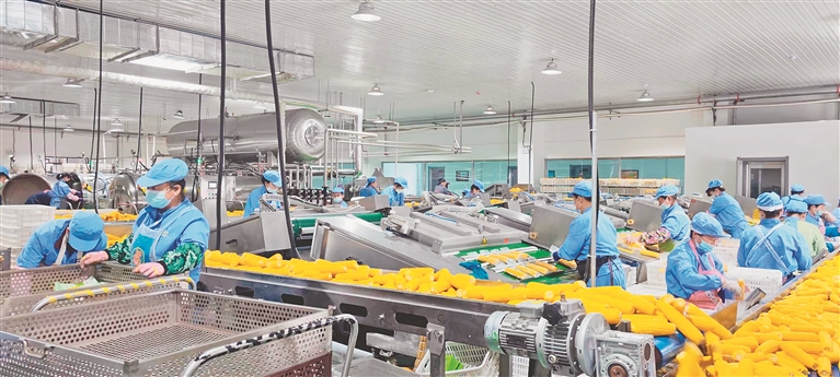 辛文苑服务的鲜食玉米加工项目,是团结村利用县衔接资金1546万元打造的脱贫产业。团结村党支部书记宋刚介绍,村里利用闲置地块建设了占地面积9300平方米、厂房面积2900平方米、仓储量1000万棒的鲜食玉米加工厂,项目于2020年9月开工,当年一期工程实现投产,2021年继续投资扩大生产。通过发展乡村振兴产业,为村集体实现稳定发展提供了产业项目支撑。