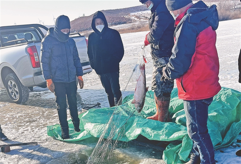 15日,四方台区在山河水库举行了“赏冰雪 观冬捕 品鲜鱼”2022年冬捕节活动。很多游客因冬捕而来,齐聚山河水库,赏水库美景,观冬捕盛况,购买水库鱼。在欢快的气氛中,鱼工开始凿冰、淘冰、收网、捕捞……在热闹的秧歌声中渔网越收越紧,平静的冰面变得热闹起来,肥美的鱼儿在网中打着滚、不断跳跃着,现场一派“鱼跃人欢”的热闹景象。