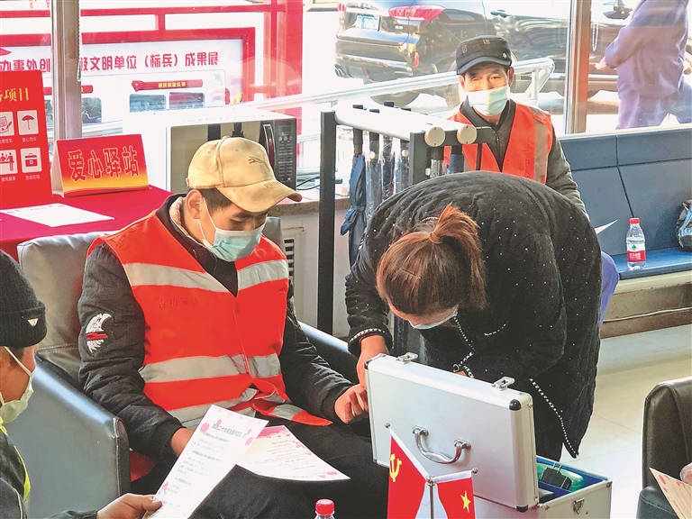 “红色驿站”为环卫工人等户外工作者提供暖身歇脚、应急药箱等服务。