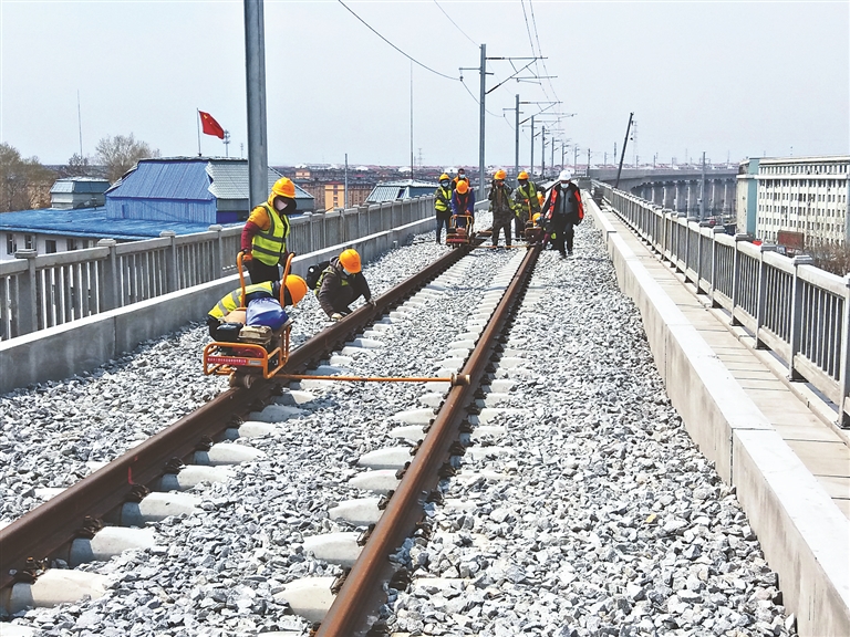 佳鹤铁路是既有线改造项目,既要按照高标准进行提档改造,还要保证既有线铁路运输不受影响。在既有线改造中,抽换轨枕、接触网施工,都要利用夜间的窗口期,建设者们分秒必争。施工单位根据鹤岗站轨枕抽换的工程特点与施工难题,本着高效保质精干、合理配置人员的原则,组建“一对一”作业小组负责施工,并对施工队伍进行专业分工。针对工期紧迫问题,组织全员一线连续奋战,后勤随叫随战,克服困难,确保全线施工节点,为整体施工计划的完成提供了保障。