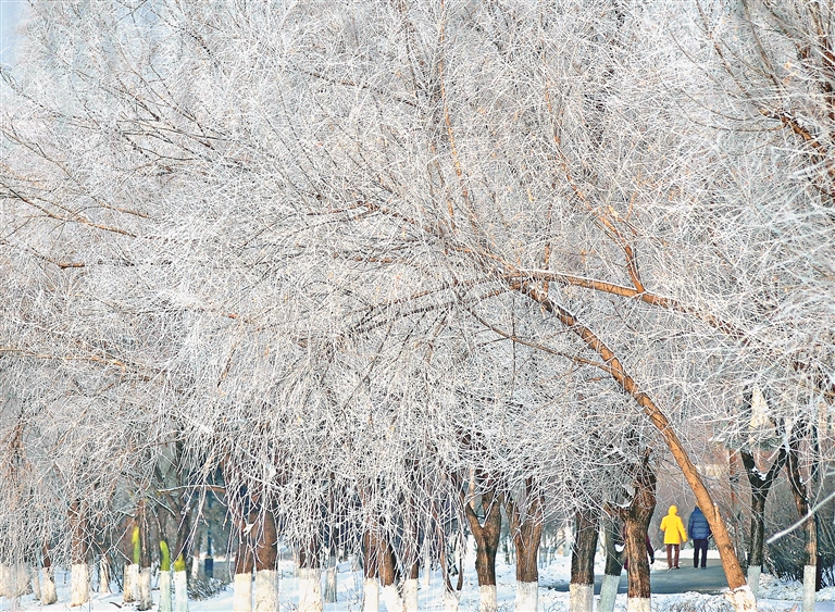一排排的树木变成了白色,如仙境里的玉树琼枝,走入其中仿佛进入一个童话世界。