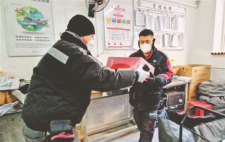 春节的脚步越来越近,年味也越来越浓。很多市民在网上大量购买年货,线下收件和送货的快递小哥们如陀螺般忙个不停。3日,记者来到位于哈尔滨市道里区安平街17号的一快递站点,跟随黑龙江省顺丰速运有限公司的两位快递小哥感受忙碌工作中的别样快乐。