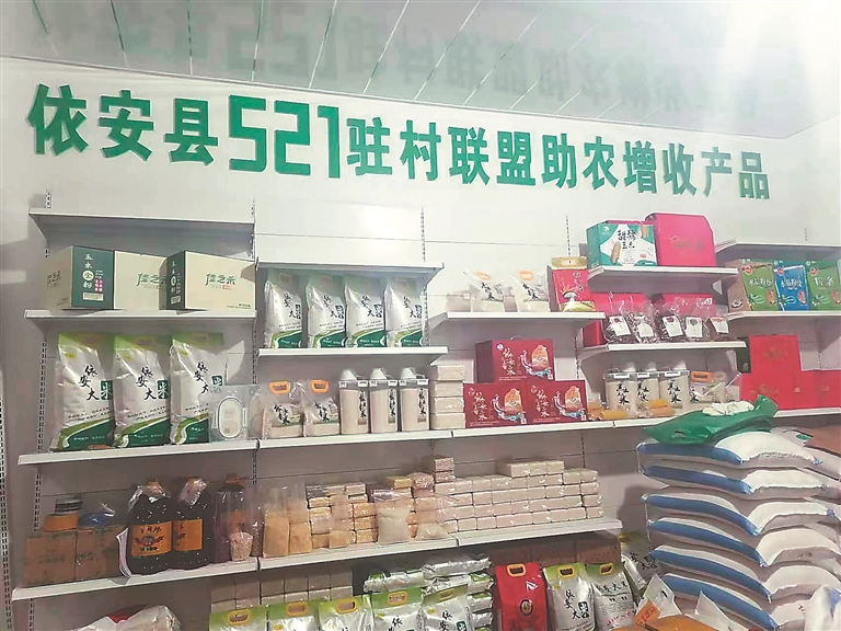 谈到特色帮扶,就要提一提依安县521驻村联盟。经过近1年的发展,521驻村联盟从无到有,逐步发展完善。“将分布在各村的杂、散、乱产品逐步汇集起来、逐步形成规模。有产品的投入产品,没产品的跟着做产品,各工作队都能够找到帮扶的新路径。”蔺春泉说,2022年,驻村联盟总销售收入330万元。