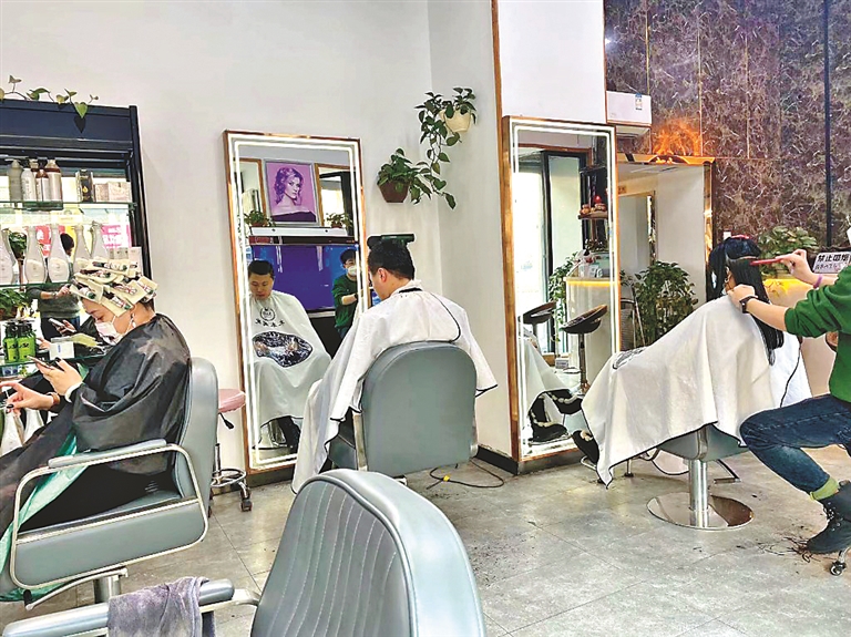 中午时分,记者在道里区田地街上的一家美容美发店看到,店内坐满了前来理发的顾客。“年关将近,现在又到了我们一年中最忙碌的时候,每天早上开门就有客人来,有时到了下班点,顾客的头发还没做完,我们就会推迟闭店时间。”理发师宝哥说,他原来每周都会放一天假,现在客人太多了,他已经取消休假。