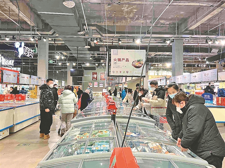 1日9时,比优特超市中央大街店刚一开门,就迎来了大批购物的市民。