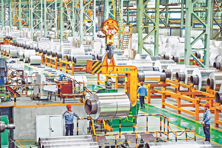 C919研制成功并取得型号合格证,是我国大飞机事业征程上的重要里程碑。早在C919大飞机项目启动初期,东北轻合金有限责任公司就参与了关键铝材研制任务。“这个长16米半,宽两米半的‘大家伙’就是C919的上机翼壁板,它有极强的耐力性,一角钱硬币大小的地方可以承受120斤的重量,在铝合金材料中是强度最高的一种。”东轻技术中心研发部主管工程师王凤春介绍。如此大规格铸锭成型,是世界各个铝加工企业都关注的难题。东轻用了近十年的时间,成功破解铝合金预拉伸厚板强韧性匹配难题,为最终实现C919机翼壁板国产化奠定了基础。