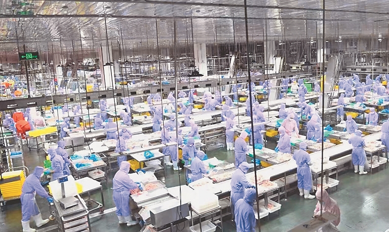 白羽肉鸡屠宰分割生产线。刘洪军摄