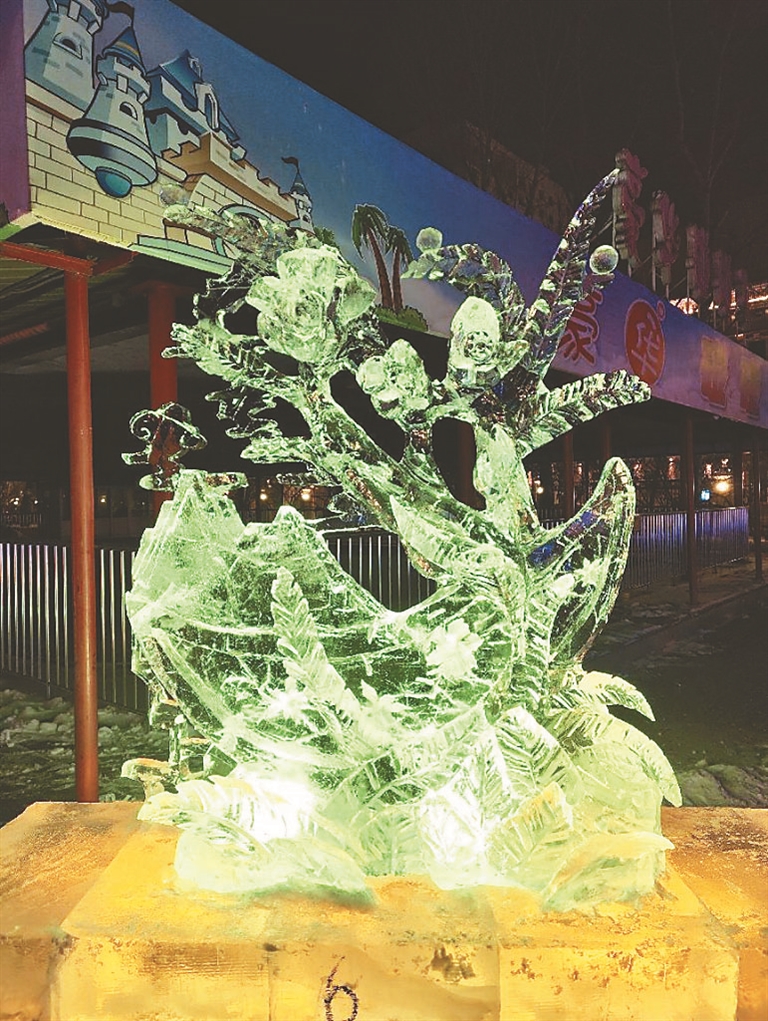 据了解,本届冰雕大赛以“冰晶雪舞 魅力无限”为主题,我省高校大学生和社会各界冰雪雕爱好者组成的10支青年冰雕代表队参加了竞技比拼。三天来,选手们在凛冽的寒风中每天都要坚持6个多小时的艺术创作,用一把把刀铲把坚硬的冰块变成美轮美奂的冰雕作品。本报记者 刘艳摄