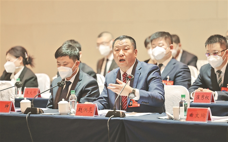 12日下午,参加省十四届人大一次会议的各代表团分组审议政府工作报告。代表们踊跃发言,谈感想、议发展。本报记者 邵国良摄