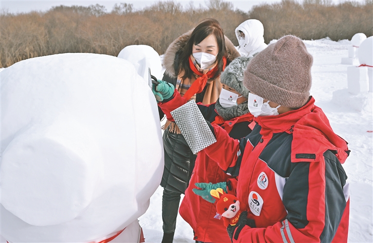 近日,在共青团“青春暖流”关爱留守儿童行动暨黑龙江希望工程快乐冰雪公益项目启动仪式上,嘉宾与留守儿童们畅游雪博会并开启冰雪之旅,他们一同欣赏独具匠心的壮丽雪雕,用心感受这座城市的冰雪文化,手拉手在零下十几度的冰天雪地里畅玩,为留守儿童们留下属于这个冬天最珍贵的美好回忆。在雕刻指导教练的耐心讲解中,留守儿童们完成了蕴含着特殊意义的“宇航员”雪雕,它将承载着希望与爱迎接2023年的春暖花开。