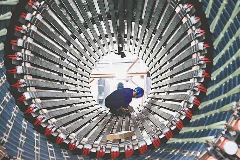 操作者装配九江1号机定子。