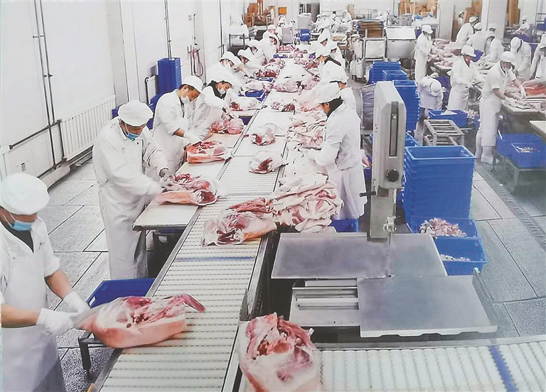 ②巴彦万润肉类加工有限公司加工车间。本报记者 王志强摄