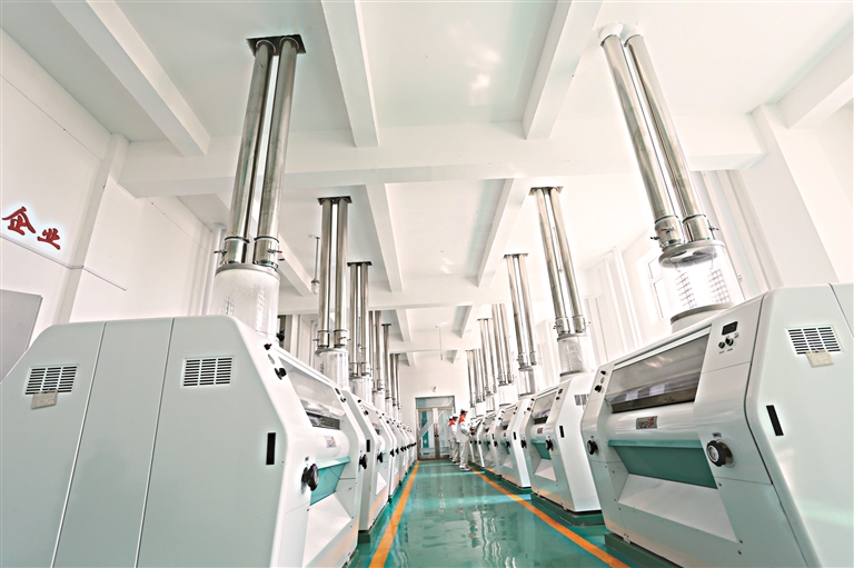 连日来,富裕县各生产企业开足马力,全力以赴赶订单、拓市场。黑龙江绿丰生态面业有限公司年加工能力10万吨,目前每天生产面粉120余吨,发往辽宁、陕西、广东等地,销量预计比去年同期提升20%左右。图为该公司自动化生产车间。李明泽 本报记者 孙昊摄