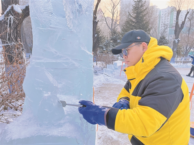 一月初,在哈尔滨兆麟公园一角,第42届全国专业冰雕比赛正在如火如荼地展开。一群穿着厚实棉衣棉鞋,戴着橡胶手套的专业冰雕师正对着冰块儿精雕细琢,不久后,这些晶莹剔透的冰块儿就会变成惟妙惟肖、形态万千的冰雕艺术作品,绽放在这座历史悠久的公园中。