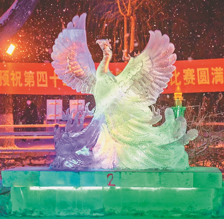参加第42届全国专业冰雕比赛获佳作奖作品《浴火重生》