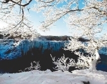 莺歌岭一个非常好听的名字,你会感到这里是一个莺歌燕舞风景如画的地方。实际莺歌岭是满语“稠李子”树的含义,因山上长满了稠李子树而得名。真实的莺歌岭位于镜泊湖的南端,依山面水,山虽不高却与湖水相依相伴了无数岁月。今天行走在此湖边上已经结成了一层坚冰,冷风吹来不由得打个寒战,你会感觉有点冷。