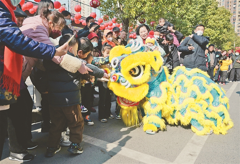 2月1日,演员在安徽省宣城市宣州区北门老街表演“吉祥舞狮”。当日,安徽省宣城市举办“春节民俗文化季”活动,各类民俗节目吸引群众观看。