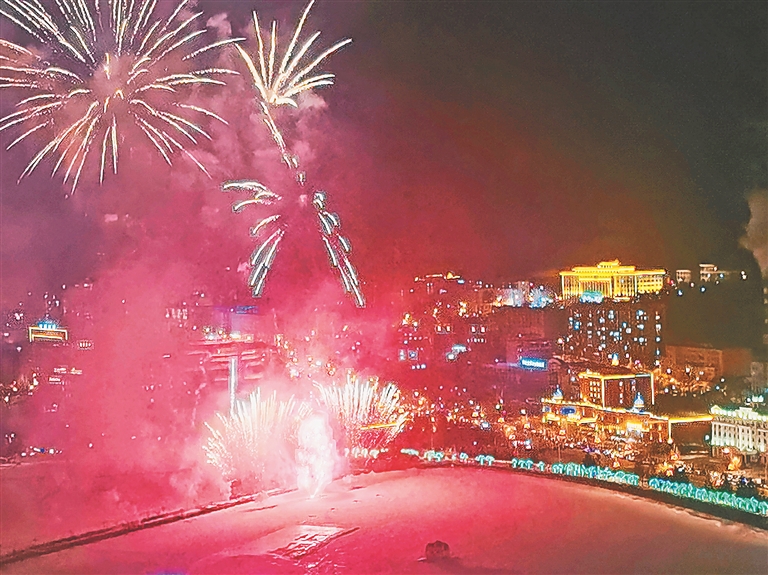 ④元宵焰火绽放百年口岸绥芬河。本报记者 杜怀宇摄