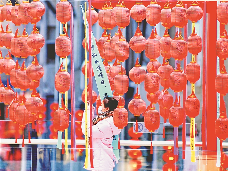 ②哈尔滨市猜灯谜活动。本报记者 苏强摄