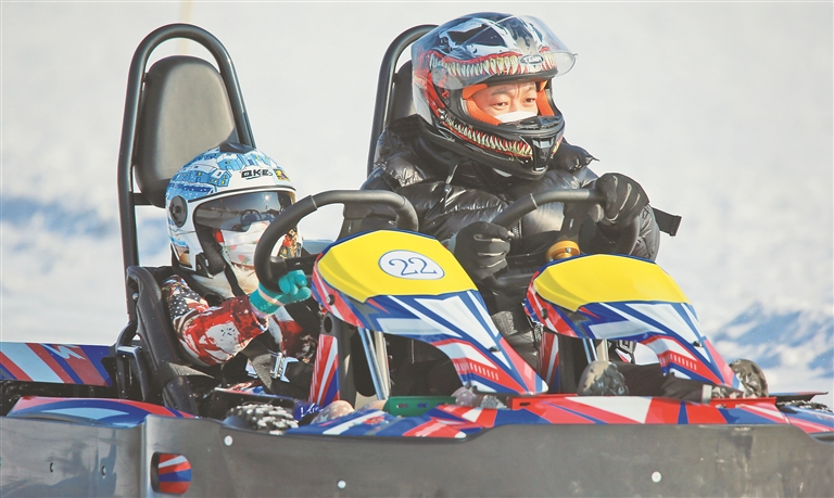 近日,在哈尔滨大剧院南广场前的松花江冰面上,一辆辆卡丁车、雪地摩托车、全地形越野车风驰电掣,不时激起阵阵冰花。作为全国最大的冬季户外汽摩泛娱乐运动基地,哈尔滨国际冰雪汽摩园在今冬开园后,深受追捧。每天,来这里游玩的人络绎不绝。