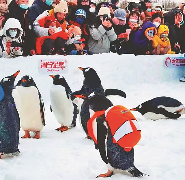 来自成都的游客杨欣告诉记者:“春节期间,哈尔滨太火了,我们没定上宾馆。来哈尔滨看‘淘学企鹅’是儿子的愿望,所以赶在孩子开学前来看看。憨态可掬的企鹅宝宝,美轮美奂的冰雕雪塑,哈尔滨简直太美了,孩子玩得超级开心。”