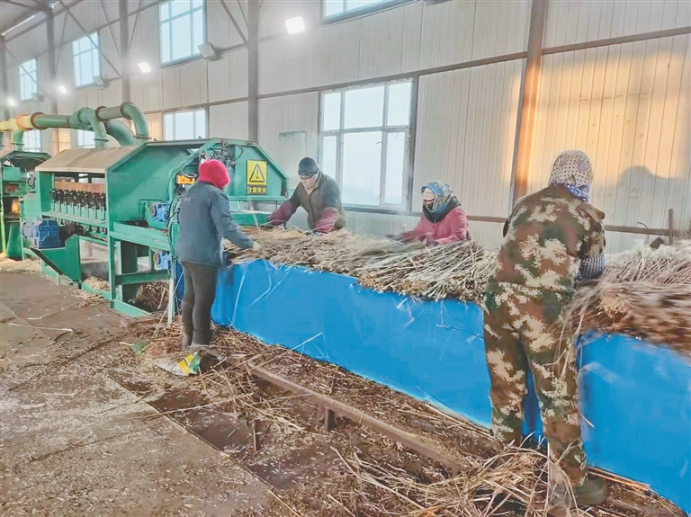 位于绥棱林区的白马石农业发展有限公司汉麻加工厂里,抱麻、切割、喂入、打包等各道工序有序进行,在汉麻加工车间,机器的轰鸣声不绝于耳。“由于生产需要,我们今年正月初七开工生产,目前生产一线30位工人全部到岗,实行‘两班倒’,24小时生产,预计每天可加工麻秆30吨左右,出成品麻5吨左右。”白马石农业发展有限公司副经理周垒介绍。