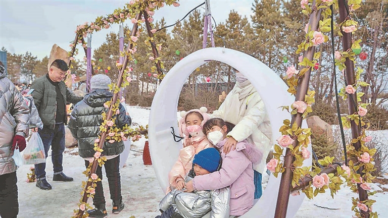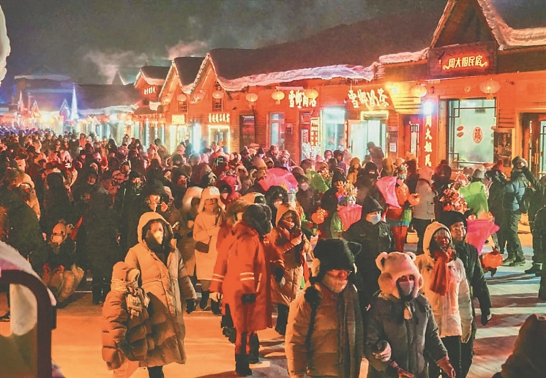 今年春节,3000多盏高挂在观光栈道和房檐白雪处的大红灯笼让雪乡显得红红火火。花车巡游、扭大秧歌、焰火晚会……精心为游客准备的互动式体验活动让景区热闹非凡。