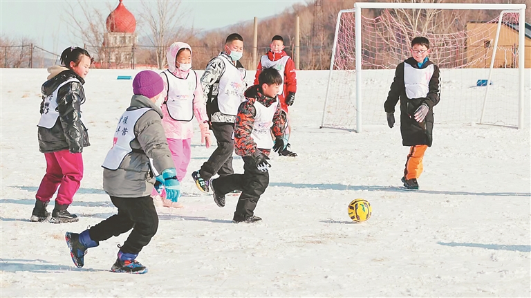 雪地足球秀脚法。图片由黑龙江省体育局提供