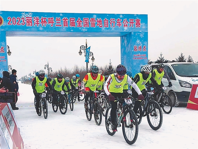 11日,2023丽洋杯呼兰首届全国雪地自行车公开赛在哈尔滨呼兰河口湿地鸣枪开赛,来自全国150多名选手参赛。据了解,此次比赛是由中国自行车运动协会批准的国家级赛事活动。白铭波 本报记者 李宝森摄