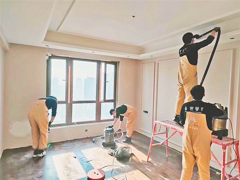 据小付介绍,一次全屋清洁通常需要4人~7人工作6小时~9小时,面积稍大些需要2天,团队中每位成员月收入都在万元左右,较为可观,现在家庭卫生管理师的市场需求量比较大,可谓是年轻人就业新方向。