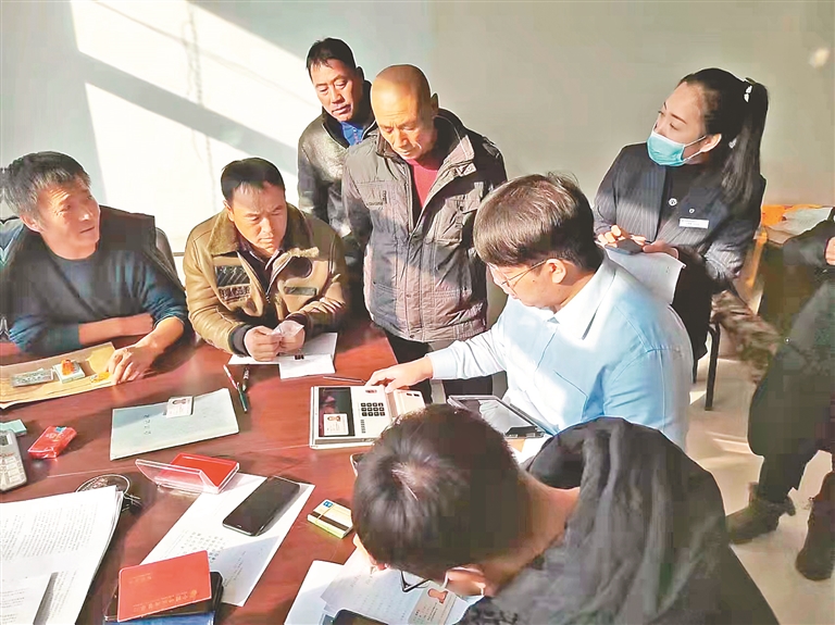 为农户办理贷款。 本报记者 王志强摄