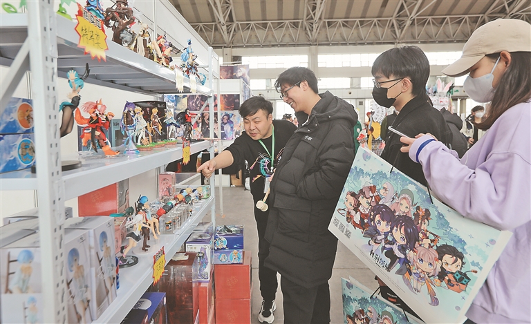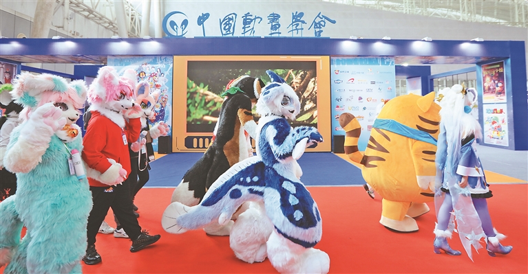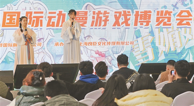 当天9时,展会现场人头攒动,动漫迷在展位间穿梭,忙着抢购周边或是与Coser合影。记者注意到,观众以大学生为主,不少参观者都打扮成喜欢的动漫角色,参展方更是使出浑身解数,纷纷“化身”为动漫中的人物。
