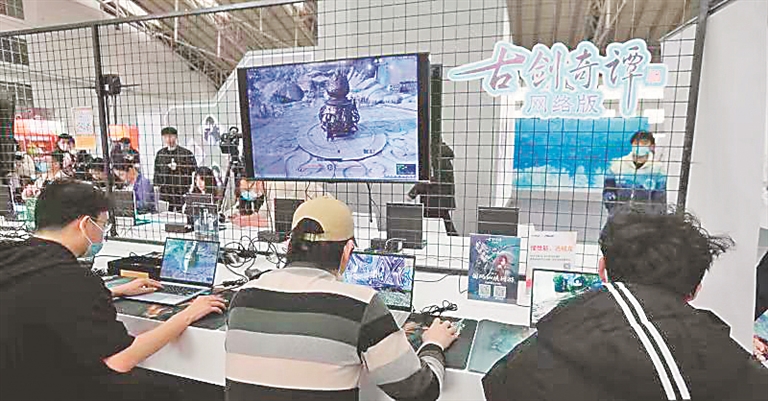 在A馆展区,两排对向电脑游戏位几乎座无虚席,还有不少人在“等位”,他们都在等待体验还未正式上线的热门游戏。参展商北京网元圣唐娱乐科技有限公司的工作人员表示,公司对受邀参加漫博会非常重视,特意带来相关装备,让漫博会的参观者能现场体验网元圣唐旗下《白荆回廊》《古剑奇谭网络版》等游戏。其中,该公司即将推出的《白荆回廊》和《心渊梦境》,目前虽未正式上线,但普通玩家可在漫博会现场抢先体验。当天展会上,企业感受到了冰城游戏玩家的热情,也为玩家送上了纪念品。