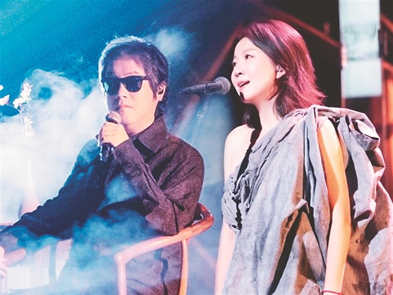 图为《我们民谣》演出剧照,上为万晓利,中为房东的猫,下为周云蓬和叶蓓。