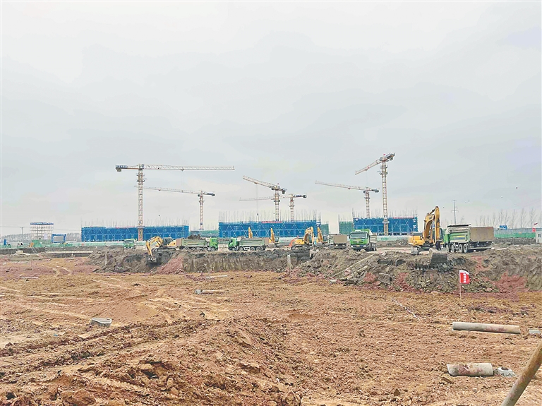 2月28日,记者在位于临空经济区太安路、临空第四大道、规划水系与临空第三大道围合区域的临空经济区生活配套区回迁安置项目施工现场看到,各项建设紧张有序进行。