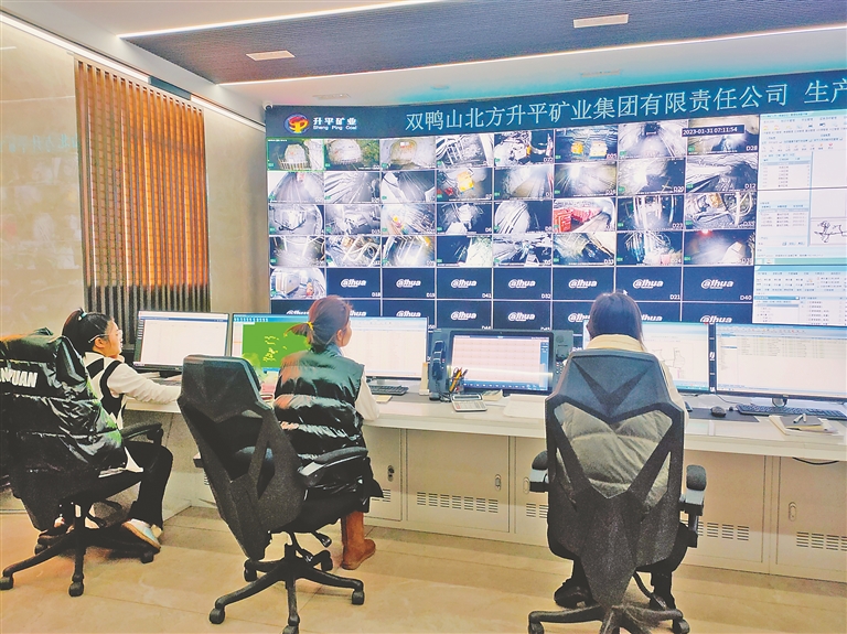 提升生产效率,优化煤炭生产组织,确保煤量充足。成立增能保供领导小组,制定冬季煤炭生产保供专项应急预案,提前组织存煤,落实生产保供措施,稳增煤炭库存,确保冬季储煤量充足。在升平煤矿五楼的调度指挥中心,LED全彩屏显示系统正显示着井下人员定位、现场生产等实时画面,不仅使地面和井下的信息沟通实现了“零距离”,也让生产调度指挥更加精准。为确保完成任务,每天都要进行风险研判,充分利用5G信息化建设成果,对重点设备、重点区域实时监控,加大巡检力度,及时消除“小隐患”,提前预防“大故障”,为煤炭生产筑牢安全基础,增强设备保障。