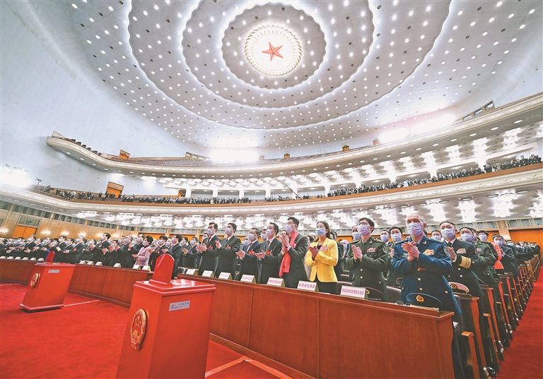 3月10日,十四届全国人大一次会议在北京人民大会堂举行第三次全体会议。新华社发